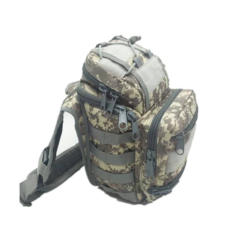 The tactical military backpack is crafted from high-quality 900D Oxford & Nylon fabric, ensuring durability and water resistance. It features thick mesh padding on the back area and shoulder straps, providing breathability and comfort during extended use. The backpack includes side and front compression strap systems, allowing for easy adjustment. Additionally, it is equipped with a chest strap and waist strap on the back, enhancing security and stability while wearing. This tactical backpack is designed with 5 compartments: the main compartments are spacious enough for clothing and other large items, while 2 front compartments offer easy access to everyday essentials. There are also 2 side compartments designed to hold items like umbrellas or water bottles. The front and side molle systems enable convenient attachment of additional equipment such as flashlight holsters, walkie-talkies, and other molle pouches, enhancing its versatility and utility for various outdoor and tactical activities.