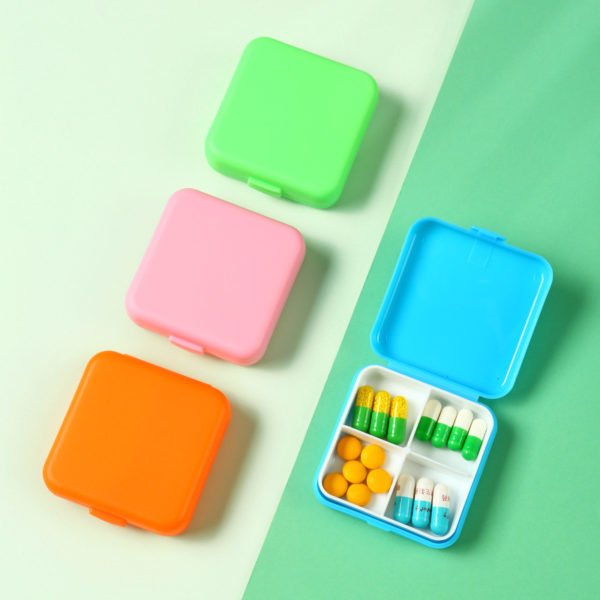 This small pill box is smaller than the palm of your hand, it is very convenient to put it in your pocket or bag. Made of high-quality food-grade PP material, after high-temperature sterilization, safe and environmentally friendly, can be placed in medicines, and medicinal powder. Snap-tight, reasonable compartment, dustproof and moisture-proof, drugs are not easy to oxidize. Carry with you, go out can be put into the bag or pocket, support customization, plus print logo. small body, large capacity, transparent and visible, a variety of drugs, capsules can be placed, easy to identify, convenient and timely replenishment of medication. The portable pill box is compact, easy to carry, and simple to operate, and can to some extent play a role in helping patients take medication on time. Ideal for people who have to go out but don’t Measuring 2.36*2.36*0.79 inches, this custom mini 4-compartment pillbox. Usage Scenarios: Office supplies, school stationery, corporate promotions, trade show giveaways. Customization: Logo printing available with multiple packaging and color options. Product Highlights: Portable, durable, practical for daily use.