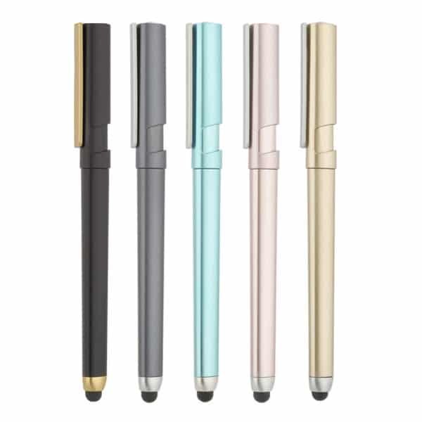 Silicone capacitive head, touch screen design, accurate and sensitive, suitable for mobile phones and tablet screens. Notched pen cap, can be used as a mobile phone stand. Selected high-quality fast-drying ink, continuous writing, smooth writing, high viscosity, and strong adsorption. Stainless steel double ball pen tip, imported ink, writing smoother. Can be freely customized with a logo, QR code, advertising slogan, etc.