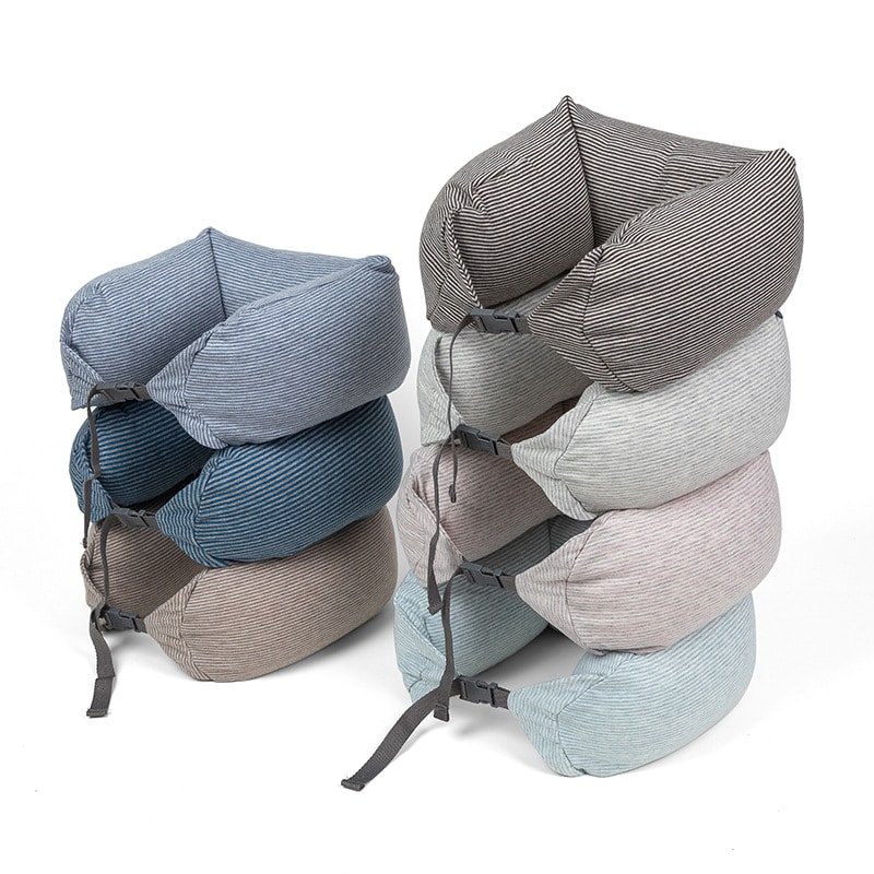 Our travel pillow jacket is made of slub cotton and lined with Lycra elastic cotton. EPS foam particles are used to fill the inner neck pillow, which has strong resilience and automatically flows under pressure to enhance comfort. An adjustable double button design is added to adjust the tightness, and a press button is added to effectively prevent the neck pillow from slipping. Open the buckle, the neck pillow becomes a strip, can be used as a backrest or foot. Made from flocked cloth material, measuring 27.5*5.51 inches, this custom multi-functional travel pillow. Usage Scenarios: Office supplies, school stationery, corporate promotions, trade show giveaways. We offer logo printing and full packaging customization. Product Highlights: Portable, durable, practical for daily use.