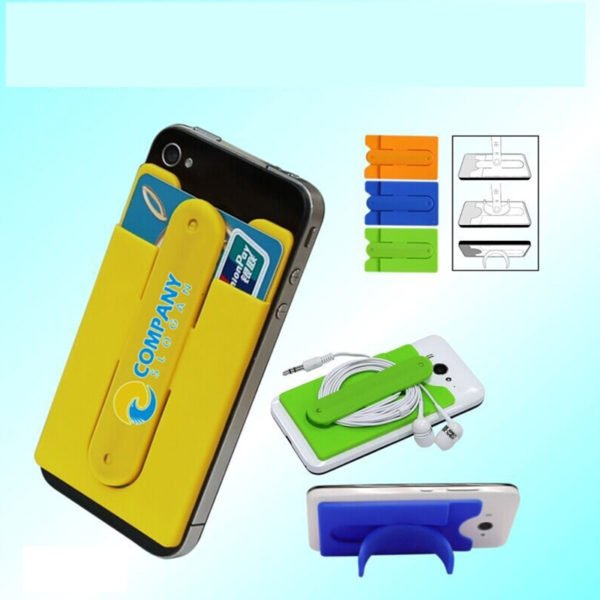 Attach this to the back of your smart phone, tablet or anywhere to make a mini wallet.Holds credit cards, driver’s license, hotel room card key, club or school ID, business cards, gym card, pool card, some cash and more, which is perfect when you’re on the go and Choose from a variety of wallet colors and customize each one with a one color silkscreen imprint on one side. Low cost, cool and techy – what’s not to love? Made from silicone material, measuring 3.82*2.2 Inches, this custom multifunctional silicone phone wallet with stand. Usage Scenarios: Office supplies, school stationery, corporate promotions, trade show giveaways. Customization available: Print your logo or customize packaging and color schemes. Product Highlights: Portable, durable, practical for daily use.