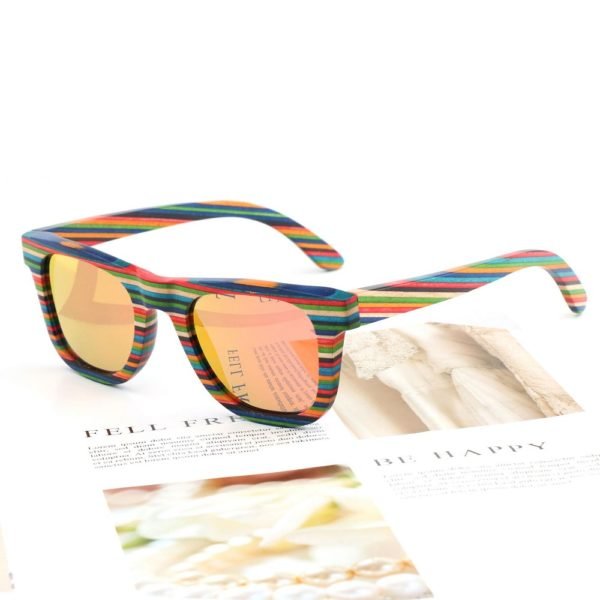 Multiple Color Wood Recycled Skateboard Sunglasses