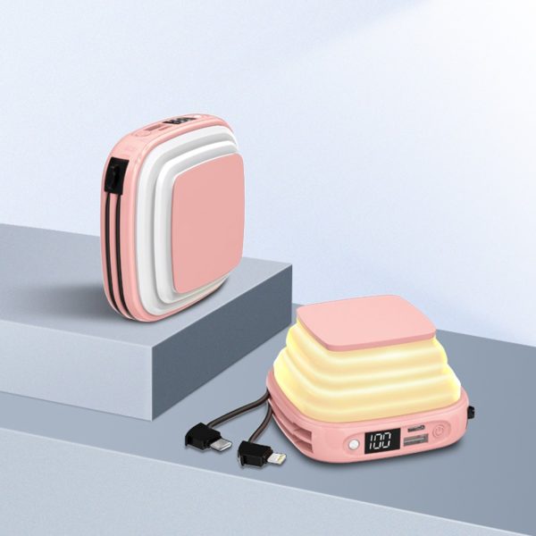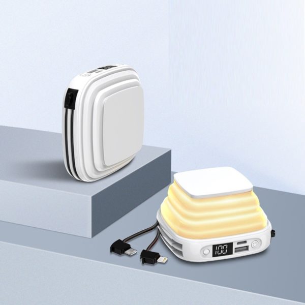 Adopting A-grade high capacitance battery cell, built-in fast charging 2.4A output. Comes with Apple cable/TYPE-C interface cable/Android adapter/digital display power/LED flashlight/night light, with an external USB output port, and TC input port.ABS plastic shell + TPU soft rubber lampshade, feel better. Hidden bracket, go anywhere, and push it with your hand to become a lazy bracket in seconds. Night light design, warm light is not harsh, moderate luminosity is more convenient. Intelligent chip upgrade, instantly brings your mobile phone back to life, applicable to a variety of scenarios, charging when you Measuring 3.54*3.5*1.5 inches, this custom night light high capacity self-corded power bank 10,000mah. Usage Scenarios: Office supplies, school stationery, corporate promotions, trade show giveaways. Tailored branding: Supports logo imprint and design personalization. Product Highlights: Compact size, lightweight, easy to carry.