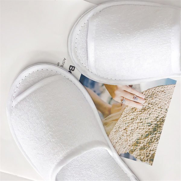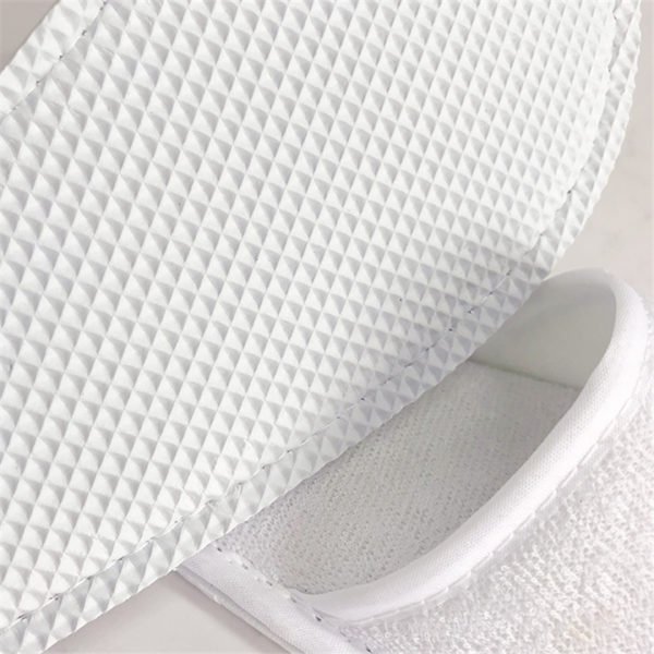 Don’t let guests settle for anything less than the best in comfort – let them slip into these slippers! These open toe slippers are constructed from cotton with a waffle weave pattern. The perfect complement to our entire line of fine robes and gift accessories. Each slipper can feature a one color imprint of your logo, making them must-have for the suites of any all-inclusive resort, day spa or luxury hotel. Slippers are available in white only. One size fits most. Made from eva, polyester material, measuring For Adult, this custom open toe waffle weave slippers. Usage Scenarios: Office supplies, school stationery, corporate promotions, trade show giveaways. We offer logo printing and full packaging customization. Product Highlights: Sleek design, durable build, easy to grip.
