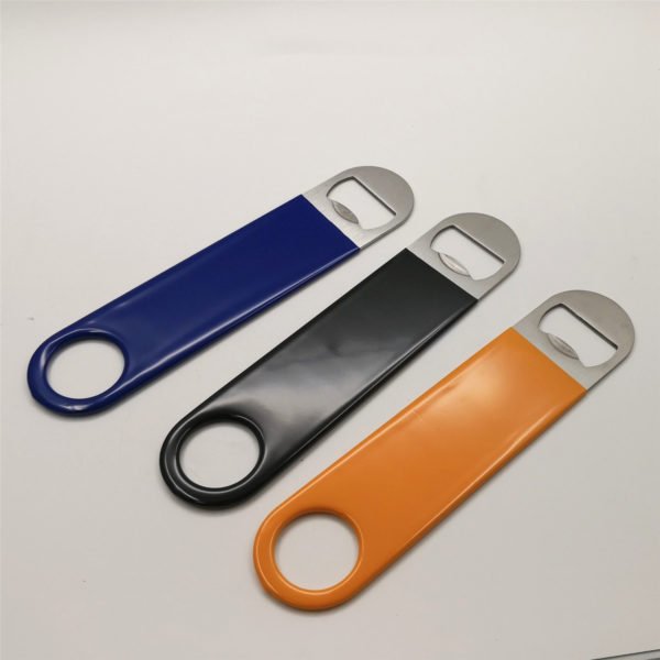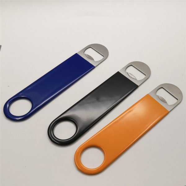 Surprise recipients with an unexpected bottle opener. Create the right look for any club setting with this mini pub vinyl bottle opener. This stainless steel opener easily opens metal bottle caps for top-popping fun that’s great for any happy hour event. It features a convenient vinyl sleeve that prevents slippage when the item is wet, as well as a hole on the end that allows for hanging or attaching to extending reels. From bartenders to homebrews, this opener is a great way to put your brand in the hands of beer lovers far and wide! Measuring 7 * 1.5 inches, this custom paddel style vinyl bottle opener. Usage Scenarios: Office supplies, school stationery, corporate promotions, trade show giveaways. Customization: Logo printing available with multiple packaging and color options. Product Highlights: Sleek design, durable build, easy to grip.