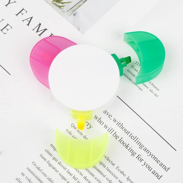 This modeling highlighter product is novel in style, vivid in appearance can attract people’s eyes, is suitable for use as gifts for festivals, promotions, and advertisements, and can be printed with logos and advertising slogans, prepare your next promotional giveaway with these affordable triangular plastic highlighters. Made of brand new plastic material, high-quality fiber tip, smooth touch, bright colors, high transparency, and long-lasting eye-catching markers. Measuring 2.95*0.55 inches, this custom petal 3-in-1 highlighter. Usage Scenarios: Office supplies, school stationery, corporate promotions, trade show giveaways. Customization available: Print your logo or customize packaging and color schemes. Product Highlights: Portable, durable, practical for daily use.