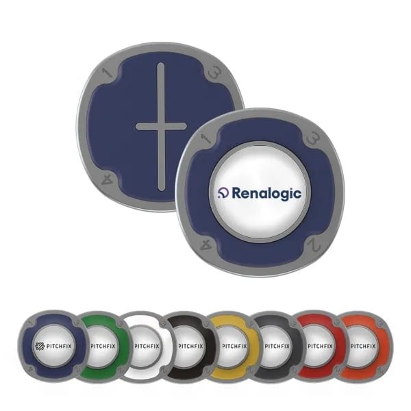 Introducing the Pitchfix MultiMarker Chip – a golf tool with multiple functions. This extra large ball marker coin features a colorful ABS overlay and a 1- removable ball marker with full color poly dome imprint. The reverse side of this multi-function accessory contains a handy putt alignment tool, and the numbered corners provide a tee toss function to determine order of play. The MultiMarker Chip pairs perfectly with the Pitchfix golf divot repair tool collection to make easy golf tournament gift sets. 6 working day production standard, rush service available. Made from metal material, measuring 2*2 inches, this custom pitchfix multimarker golf chip with logo. Usage Scenarios: Office supplies, school stationery, corporate promotions, trade show giveaways. Customization: Logo printing available with multiple packaging and color options. Product Highlights: Sleek design, durable build, easy to grip.