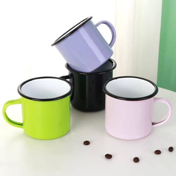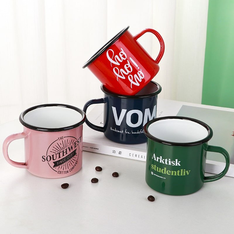 No trip into the wilderness will be complete without this Camping Enamel Mug! Made of enamel-coated steel, this enamel mug features a gorgeous handle, holds up to 12 ounces of coffee, tea or any other beverage. It’s durable construction is great for both hot and cold liquids. PMS custom is available for the mug and rim. Add your company name or logo to promote your business. More information, please send your detailed request for quotation.
