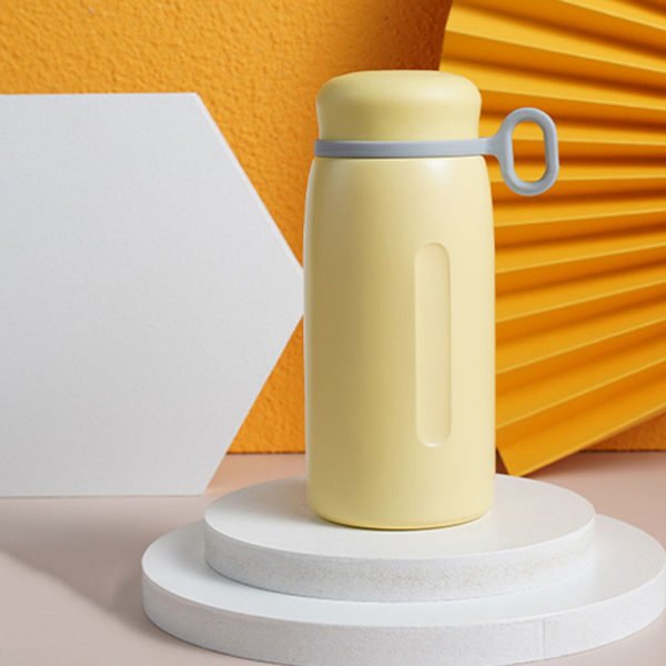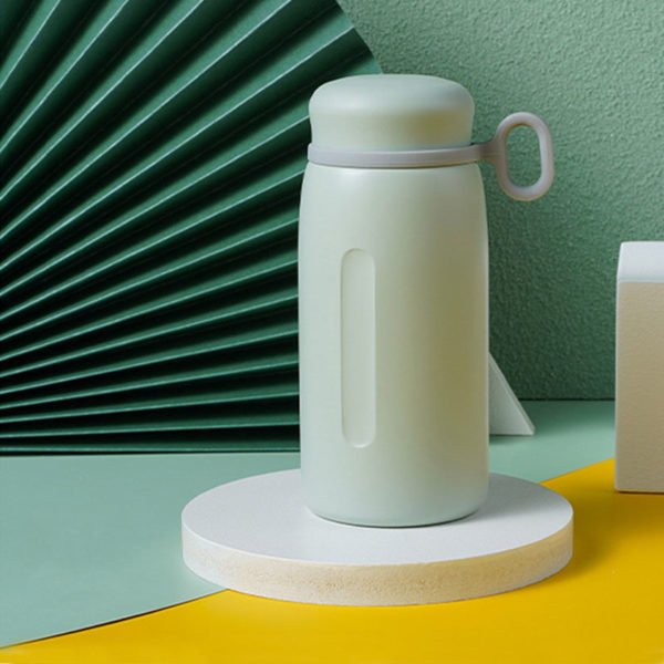 14oz capacity, just one hand. Thickened silicone carry ring, out of sports with hand, rounded internal arc, load-bearing at the same time more comfortable feel. Mini size, how to put in the bag can be. Sealed without dead angle, all-round protection, any shake does not leak. Selected SUS304 stainless steel liner, healthy material, high-temperature resistance, and corrosion resistance. Textured surface technology plus side wall concave hand position, non-slip wear-resistant, convenient to hold. Large caliber, all kinds of tea bags can be easily put in. Fit thumb, easy to open design, load hot water is not afraid. Measuring 2.9*6.6 inches, this custom portable small capacity insulated bottle 14oz. Usage Scenarios: Office supplies, school stationery, corporate promotions, trade show giveaways. Customization available: Print your logo or customize packaging and color schemes. Product Highlights: BPA-free, leak-proof, travel-friendly.