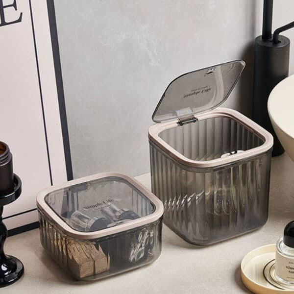 Introducing our Press-Top Transparent Mini Desktop Trash Can, perfect for adding a touch of elegance to your home. This high-visibility, stylish waste bin is designed for use on tabletops, nightstands, or any small surface. Its compact size makes it ideal for bedrooms, offices, or bedside use. The press-top design ensures easy waste disposal, while the transparent material adds a modern look to any decor. Keep your space neat and organized with this chic and functional mini trash can. Made from pvc material, measuring 5.9*5.9*3.3 inches 5.9*5.9*5.5 inches, this custom press-top transparent mini desktop trash can. Usage Scenarios: Office supplies, school stationery, corporate promotions, trade show giveaways. Customization available: Print your logo or customize packaging and color schemes. Product Highlights: Portable, durable, practical for daily use.