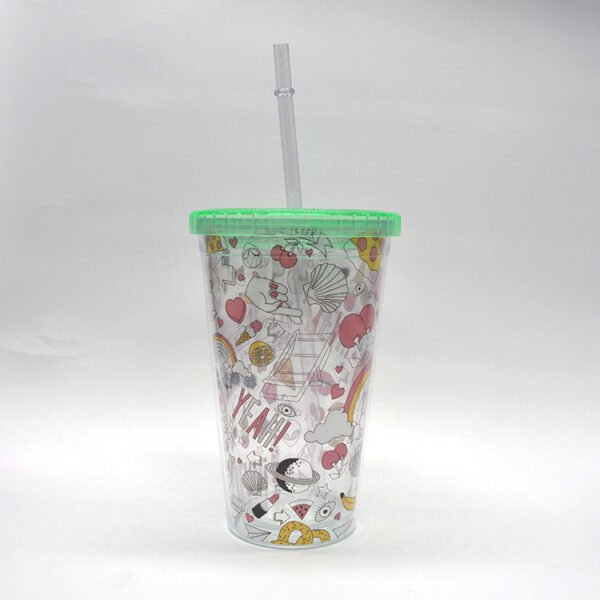 Bring your favorite beverage with you on the go with this 16 oz. double-wall green tumbler! Made of BPA-free polypropylene plastic, this handy drinking container features a matching color rigid straw with a plastic stopper to keep it in place, as well as a snap-on lid. It is designed for use with cold and room-temperature drinks only. Not microwave safe. Top rack dishwasher safe, though hand wash is recommended for imprinted products. It fits into most car cup holders and can be customized with a brand imprint. Made in the USA. Made from plastics material, measuring 5.7*3.75 inches, this custom prime line 16oz double-wall tumbler.