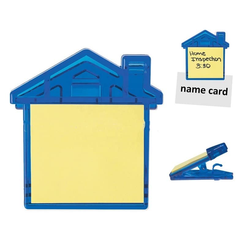 This house shaped clip comes with self-adhering notes and a magnet on the back side. It also has a spring-loaded hinge and a clip to hold a pen or pencil. Attach it to refrigerators or office filing cabinets and use it for holding important notes. Available in solid and translucent color options, have your company name and logo imprinted on this and use it as a promotional giveaway for new homeowners! If you want to get more information about customization, please don’t hesitate to contact us!