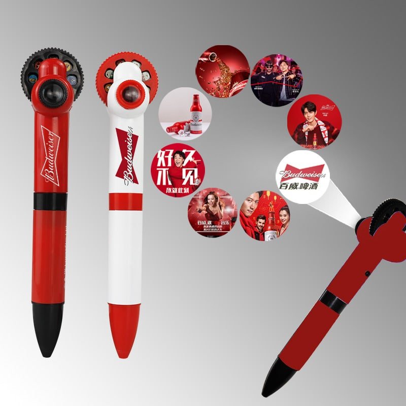 With just a twist of this amazing logo projector pen, a full color image is beamed from the top of the pen. Can be customized with exclusive logos, patterns, etc., and is a very influential advertising and promotional gift, not only the pen but also your advertising spokesman. Metal nib, anti-collision is not easy to damage, and wear-resistant steel beads are smoother. Built-in new button battery, clear imaging, long-lasting life. Soft rubber design, increase grip friction, feel comfortable. Simple to disassemble, the refill can be replaced, easy to use for a long time. Measuring 5.7* 1.57 inches, this custom promotional rotary 8 figure projection pen with your logo. Usage Scenarios: Office supplies, school stationery, corporate promotions, trade show giveaways. We offer logo printing and full packaging customization. Product Highlights: Sleek design, durable build, easy to grip.