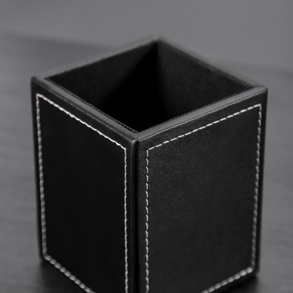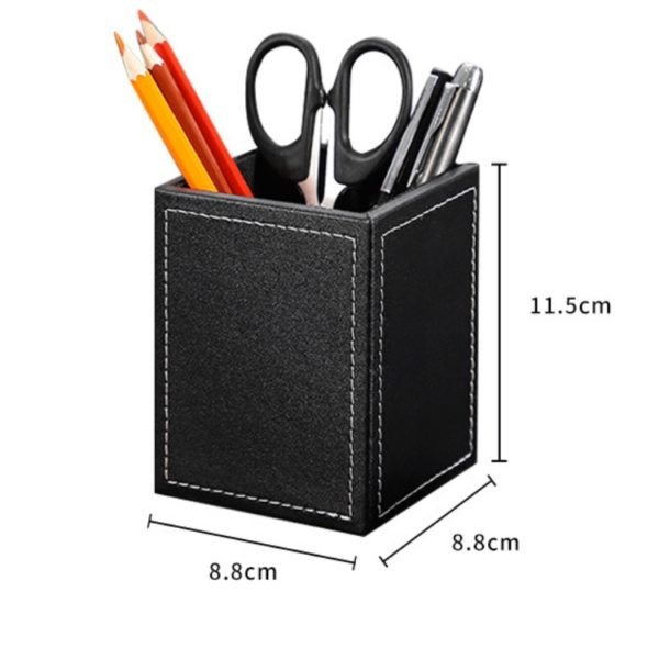 This cuboid pen holder is made of high quality PU. Totally vegan. Beautiful and durable. Perfect for holding your writing instruments and office accessories while keeping your desk stylish and organized. Available in two colors: black and brown. This desk organizer holds all the stationery you need while you work. You can store letter openers, pens, scissors, markers and more. Can also be used as a holder for makeup brushes. We can print your logo or slogan on the product! Measuring 3.5*3.5*4.5 inches, this custom pu black & brown cuboid pen holder makeup brush container. Usage Scenarios: Office supplies, school stationery, corporate promotions, trade show giveaways. Customization available: Print your logo or customize packaging and color schemes. Product Highlights: Sleek design, durable build, easy to grip.