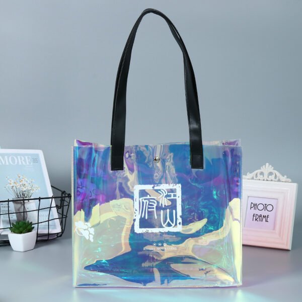Selected PVC material, thick and unbreakable, waterproof and durable. Flat seams, even and fine, durable, and prevent offline. Edges and handles are connected by a hot pressing process and are solid and stylish, with strong load-bearing capacity. There is a bottom and edges, the edges and corners of fine workmanship, sewing process is strong and durable and does not hurt the hand. Support custom, print your logo, monochrome or color printing are available. Measuring 13.4*11.8*3.9 inches, this custom pvc laser transparent handbag. Usage Scenarios: Office supplies, school stationery, corporate promotions, trade show giveaways. Customization available: Print your logo or customize packaging and color schemes. Product Highlights: Eco-friendly material, reusable, foldable for storage.