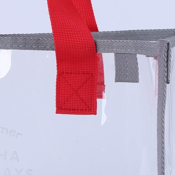 Using high-quality PVC fabric, high definition, waterproof, and dustproof, recycling more peace of mind. Suitable for business exhibitions, product launches, life shopping, entertainment, and leisure. Thickened and thickened handles, long time use without strangulation, and the product tread line flat, beautiful, fine workmanship, better bearing capacity. Measuring 7.87*7.87*3.94 inches, this custom pvc transparent tote bag. Usage Scenarios: Office supplies, school stationery, corporate promotions, trade show giveaways. Customization available: Print your logo or customize packaging and color schemes. Product Highlights: Eco-friendly material, reusable, foldable for storage.