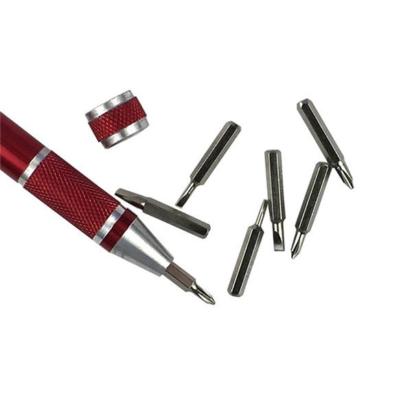 8 in 1 Mini Gadgets Repair Tools Pen Style Precision Screwdriver Set Kit8 conventional screwdriver head to meet your daily use.4.33 inches in length is not only convenient to use, but also very comfortable to use.With three non-slip, you can use a screwdriver like a pen.Super portable, length only 4.33 inchs, can be placed in the pocket, bags and other places.With a clip can be caught on a shirt. Made from aluminum material, this custom repair tools pen style precision screwdriver set kit. Usage Scenarios: Office supplies, school stationery, corporate promotions, trade show giveaways. Customization: Logo printing available with multiple packaging and color options. Product Highlights: Sleek design, durable build, easy to grip.