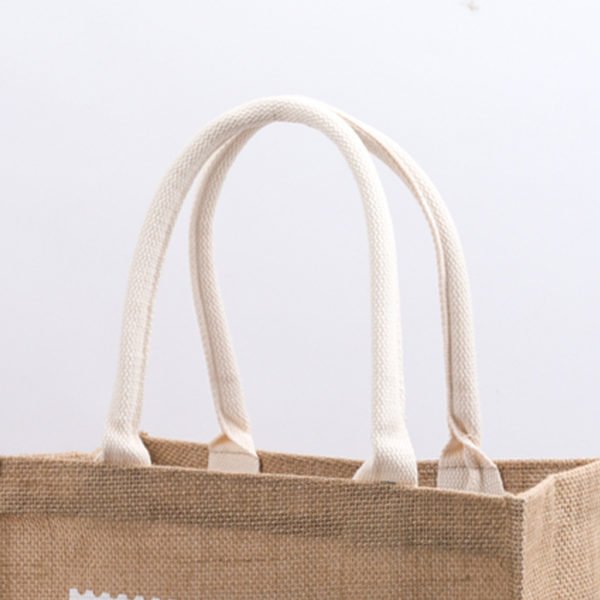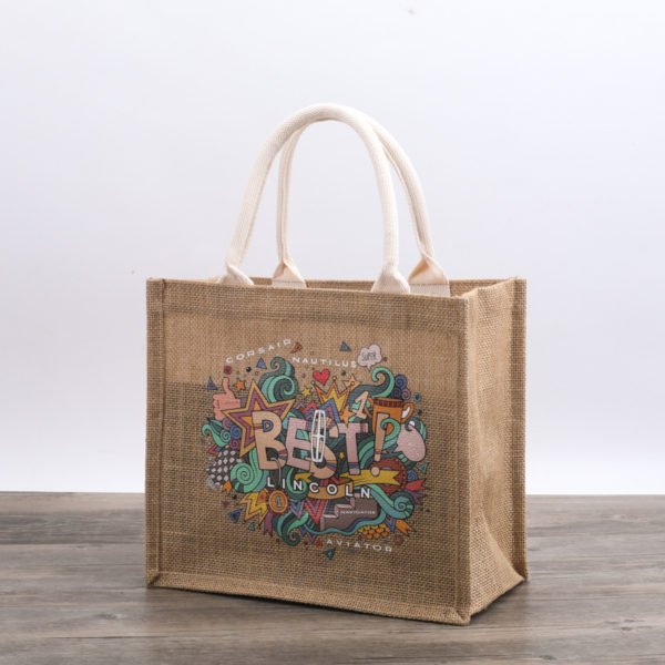 Keep your eyes and ears open for a great new promotion!Allow your logo to lead the pack with the unique jute tote with a front pocket! Made from 100% pure natural jute,a vegetable fiber,this eco-friendly bag is 100% biodegradable.Featuring cotton rope handles,this bag can carry your essentials around in style.Available in four azo-free dye colors,an imprint of your logo is sure to stand out at any tradeshows,conventions,fair,fundraiser, and other corporate events.Let this practical promotion carry your brand name to new heights!Customize with your own logo, graphics and text for a really unique tote bag. Measuring 13.4*10.6 inches, this custom reusable jute tote bag with custom logo.