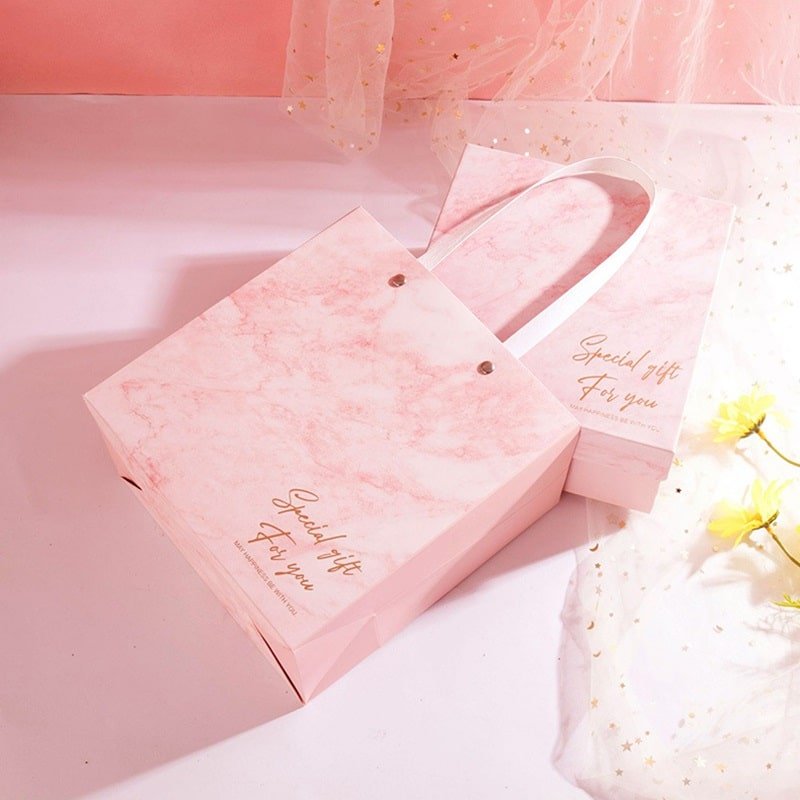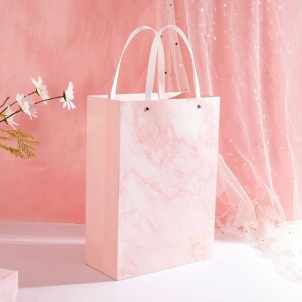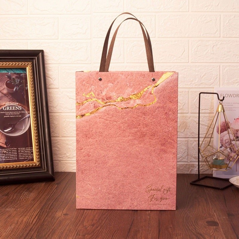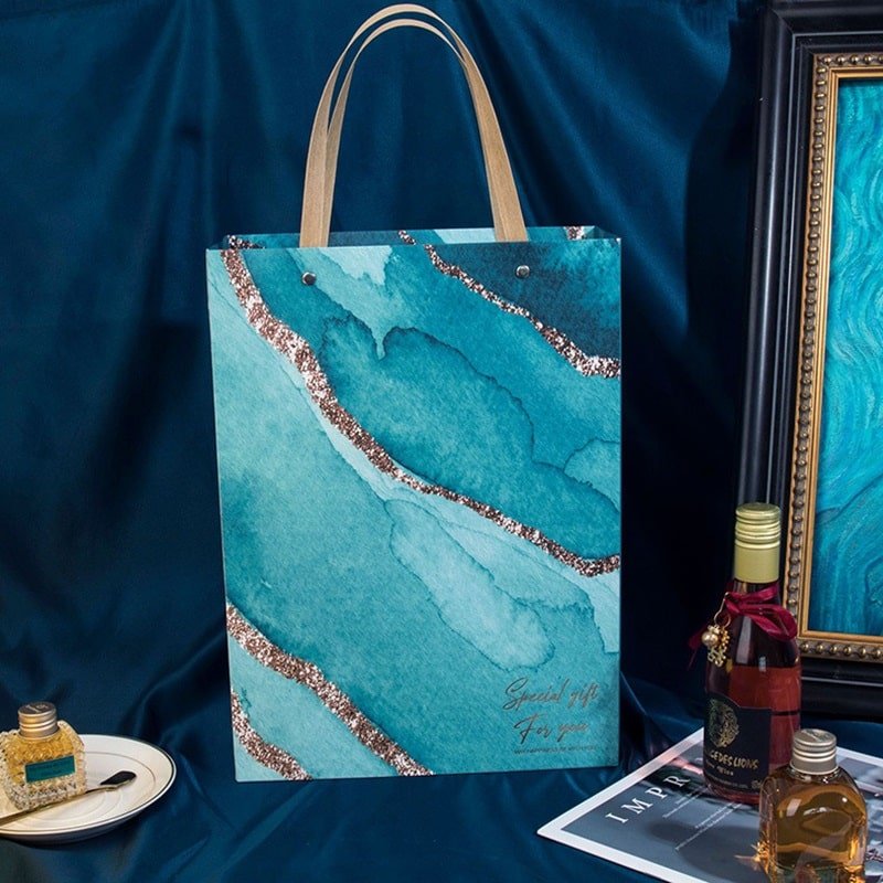 The design and color palette of this product is very delicate and good-looking, it can not only hold gifts but also clothes, food, drink, etc. It is also very delicate and good-looking in terms of packaging, suitable for various industries and leading the development of a feature of the industry. The use of a better load-bearing style of handle rope makes the gift bag more robust and durable and is fixed with rivets for better load-bearing. The delicate folds are beautiful and durable, and the quality of the cut is always the same. Customized logo using hot stamping process, high quality and high grade, simple and atmospheric. Made from white cardboard material, measuring 9.84*4.33*10.63inches, this custom riveted gift paper bag. Usage Scenarios: Office supplies, school stationery, corporate promotions, trade show giveaways. We offer logo printing and full packaging customization. Product Highlights: Eco-friendly material, reusable, foldable for storage.