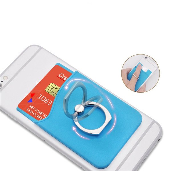 Silicone smartphone pocket with rotating metal ring on back that transforms holder into stand. Includes removable adhesive for placement on back of smartphone, cell phone or mobile device. Single pocket doubles as a wallet – insert transit cards, credit cards, IDs, and business cards. Holds approx. 3 cards. Patent pending. Measuring 3-1/2 x 2-1/4 inches, this custom silicone cell phone wallet with metal ring. Usage Scenarios: Office supplies, school stationery, corporate promotions, trade show giveaways. We offer logo printing and full packaging customization. Product Highlights: Portable, durable, practical for daily use.