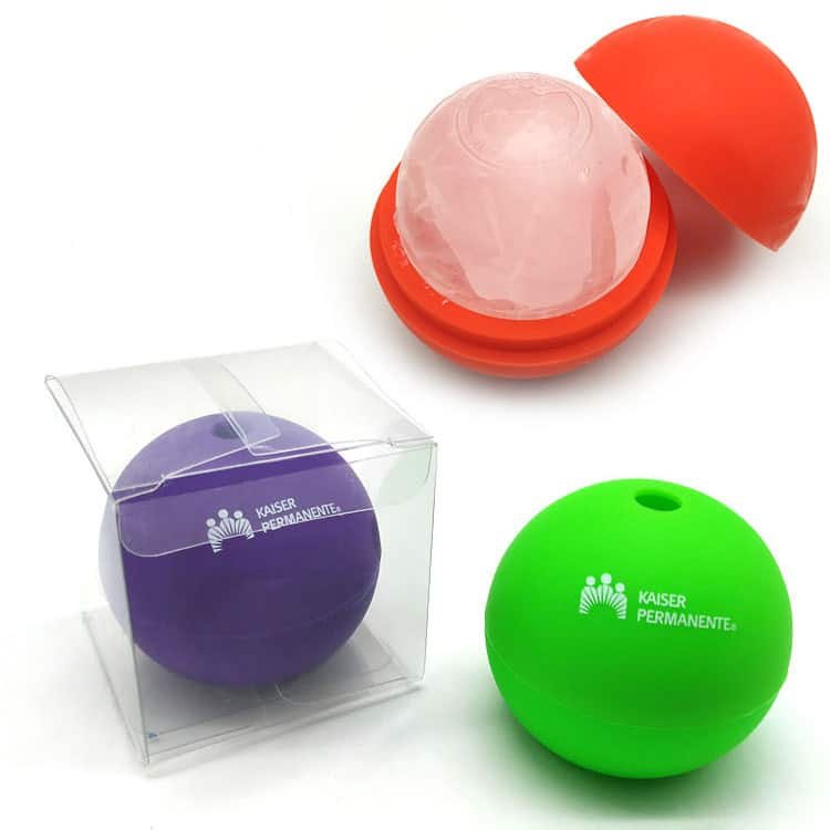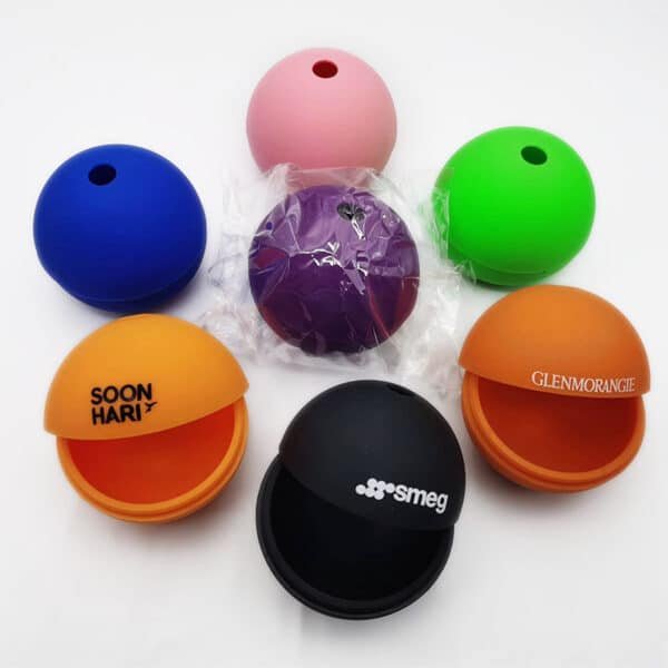 Keep your next cocktail party or other event rolling when you chill out your guest’s drinks with ice balls created with this fun mold! This 2.4- x 2.7- silicone mold has a two piece design with a raised edge that holds it together. Simply attach the two halves and fill it with it with water. A few hours in the freezer will transform them into ice balls. Just pop them open, remove and enjoy. Works great with fruit juice and flavored drinks too. Available in a range of great colors. Print your school, sports team, organizational or company logo and add a debossed logo on your own ice ball to customize. More information, please send your detailed request for quotation.