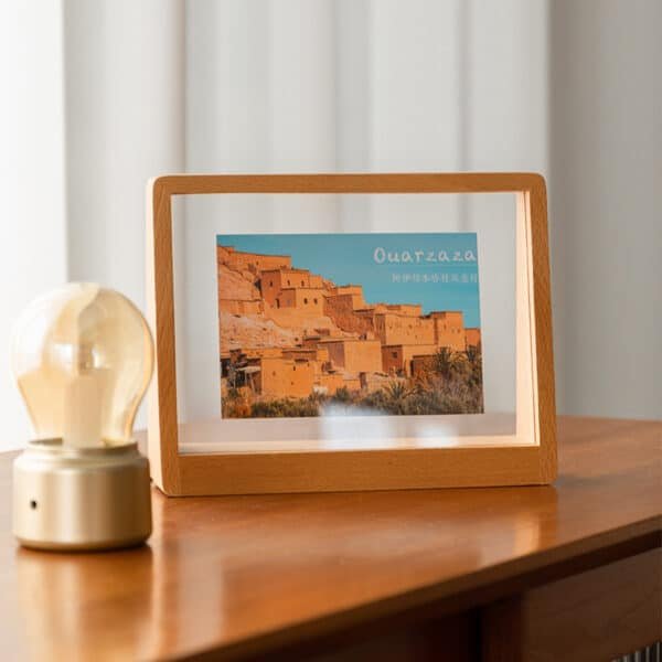 High-quality beech wood with textured grain, keeping the color of the original wood, the characteristic wood grain is visible. Natural solid wood with beautiful texture, each piece of wood is different from the other. The shape is a trapezoidal profile, a small top, and a large bottom, the bottom is more stable. Double-sided plexiglass, two sides of the universal, more convenient to replace the photo, long-lasting use without discoloration, beautiful at the same time, to ensure the closure of the panel, effective protection of the photo, dust, and stains. Multi-channel manual polishing process, wood wax oil finish, safe and environmentally friendly, comfortable feel. The groove design of the base effectively fixes the photos without falling. Measuring 5.12*7.09 inches, this custom simple trapezoidal beech photo frame stand. Usage Scenarios: Office supplies, school stationery, corporate promotions, trade show giveaways. Customization available: Print your logo or customize packaging and color schemes. Product Highlights: Portable, durable, practical for daily use.