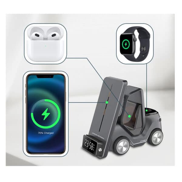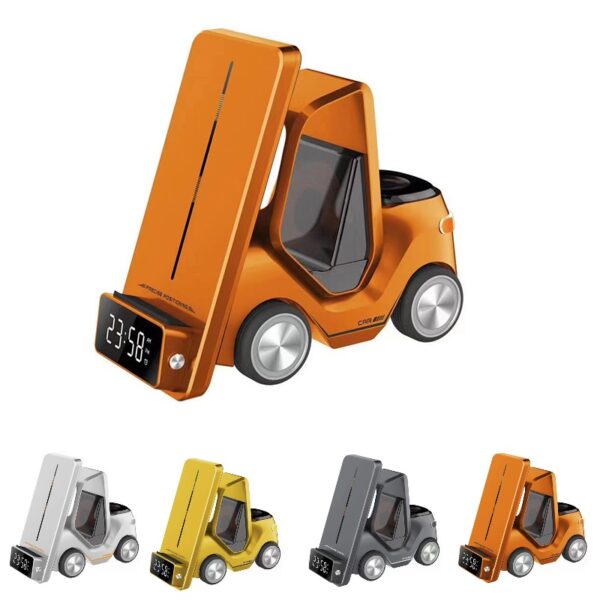 This multifunctional wireless charger includes a Led digital display, clock, cell phone holder and supports magnetic charging, which is definitely a unique 5-in-1 multifunctional charger. Placed on the desktop can surely be an attractive eye-catcher for customers, premium and classic color scheme, solid and non-slip design, 15w wireless fast charging, mobile phone/headphone/watch can be completed charging at the same time, automatic output of matching current, suitable for most models of cell phone charging. Product colors are grey, white, yellow, orange, Tpye-C interface, can use silkscreen laser logo. Made from abs & pc material, measuring 5.9*5.75*2.95 inches, this custom small car shape with led-5-in-1 wireless charger phone holder. Usage Scenarios: Office supplies, school stationery, corporate promotions, trade show giveaways. Customization available: Print your logo or customize packaging and color schemes. Product Highlights: Compact size, lightweight, easy to carry.