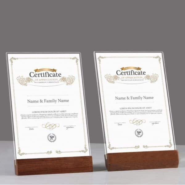 Selected high-quality pure acrylic panels, non-cheap PS board impersonation, high translucency, use 5 years does not change yellow. Built with solid wood, quality, and value coexist, and simple style, and design produce more heartfelt products. Withdrawal design, easy to change the paper, 2 pieces of high-definition acrylic panel, and the groove between the tight fit, safe and not fragile. Slow workmanship, the frame is polished and polished many times, and the body is smooth and delicate, oiling treatment. Customizable laser logo on the base for maximum brand exposure. Polished edges to prevent scratches, fine treatment of corner details, not to hurt your hands. Measuring 5.83*8.27 inches, this custom solid wood & acrylic photo frame stand. Usage Scenarios: Office supplies, school stationery, corporate promotions, trade show giveaways. Customization: Logo printing available with multiple packaging and color options. Product Highlights: Portable, durable, practical for daily use.