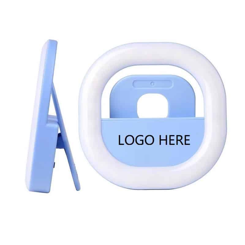 Upgrade your selfie game to epic proportions when you enlist the help of this selfie light! This square ABS plastic device features many LED bulbs to provide key and fill lighting on those video calls, blogs, vlogs and social media posts. Includes a standard and MicroUSB charging cord and easily attaches to most cellphones. Pushbutton operation. Choose from three colors and add your school, sports team, organizational or company logo or message to customize. Measuring 0.59 inches, this custom square led selfie ring light. Usage Scenarios: Office supplies, school stationery, corporate promotions, trade show giveaways. Tailored branding: Supports logo imprint and design personalization. Product Highlights: Portable, durable, practical for daily use.