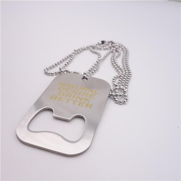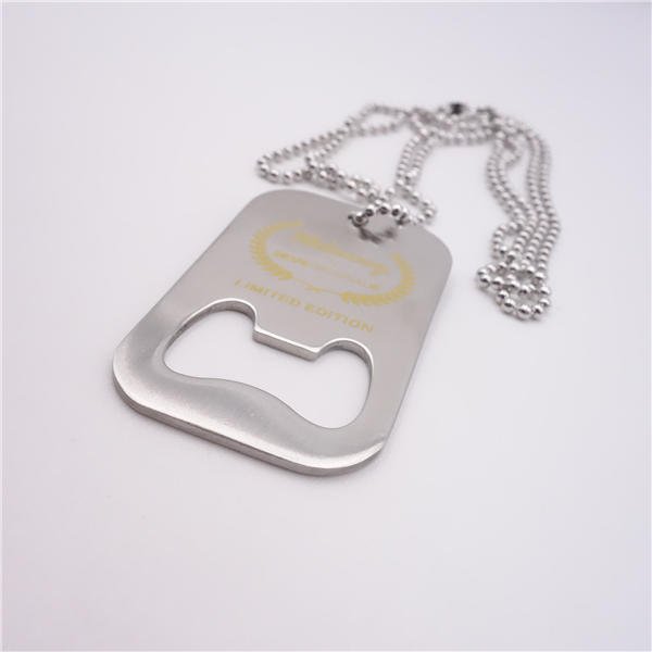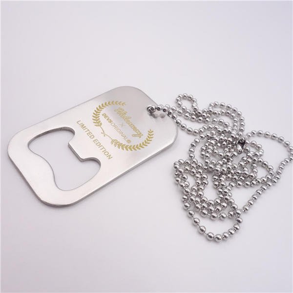 Your customers will identify with your brand when you pass along this premium dog tag at your next marketing compaign.This durable dog tag is made of stainless steel,which comes with a bottle opener and features a chain.It’s perfect for tradeshows, seminars and conferences.Customize each one with your company name,brand logo or marketing message and offer them to your new and potential customers for best branded promotion. Measuring 2 3/4 inch x 1 1/2 inch, this custom stainless steel dog tag with bottle opener. Usage Scenarios: Office supplies, school stationery, corporate promotions, trade show giveaways. Customization: Logo printing available with multiple packaging and color options. Product Highlights: Sleek design, durable build, easy to grip.
