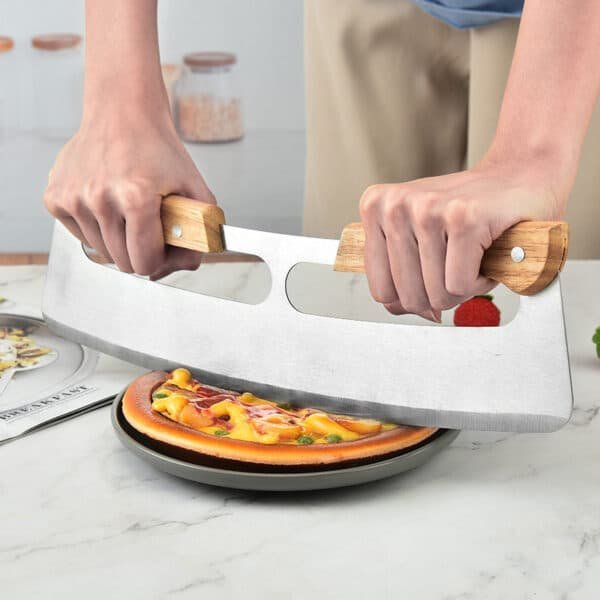Using high-quality food-grade hardened stainless steel blades, the quality of the blade allows you to easily cut large pizzas at one time, and unlike the wheel cutter, your cheese and ingredients will not slip anymore! Stop battering your pizza into slices or going to the same place over and over again! Our blades can even cut out crusty pizzas or flatbreads, and they stay sharp for longer. Unlike those thin wood, plastic or cheap stainless steel rolled handles, our pizza slicer is designed from the ground up to provide a reliable and wide handle that can hold the knife in a complete, full-hand, knife-like manner. Feel safe to control the pressure and movement required to cut pizzas, toppings, flatbreads, pies, herbs, fruits and vegetables. Measuring 13.78*3.94 inches, this custom stainless steel pizza cutter with protective cover. Usage Scenarios: Office supplies, school stationery, corporate promotions, trade show giveaways. Customization available: Print your logo or customize packaging and color schemes. Product Highlights: Portable, durable, practical for daily use.