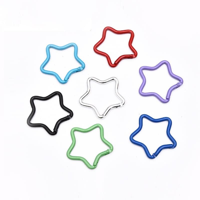 It is made of high quality aluminum alloy, lightweight, mini size. Smooth shiny polished finished, with no sharp edge on them. The spring loaded gate metal biner ensures quick link and locking. Spring-Loaded Closing Gate Makes it smoothly to open and close. Carabiners can be easily attached to pocket, snap clips, hooks, carrier, chains, and carry keys, water bottles, camping gear, lanterns, lights, keychains, key ring, rope, climbing utility, hunting accessories. Customized are available. Measuring 1.88*1.88 inches, this custom star-shaped aluminum alloy carabiner. Usage Scenarios: Office supplies, school stationery, corporate promotions, trade show giveaways. Customization available: Print your logo or customize packaging and color schemes. Product Highlights: Portable, durable, practical for daily use.