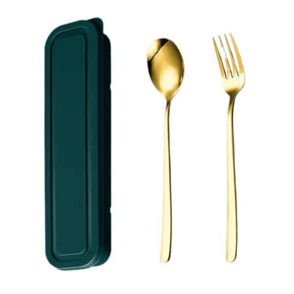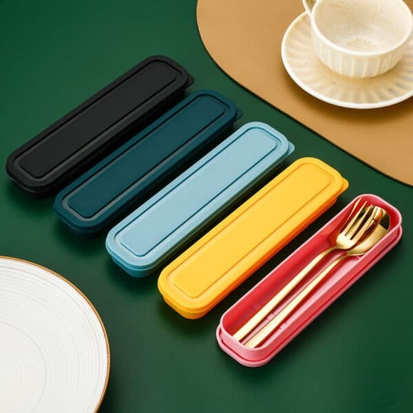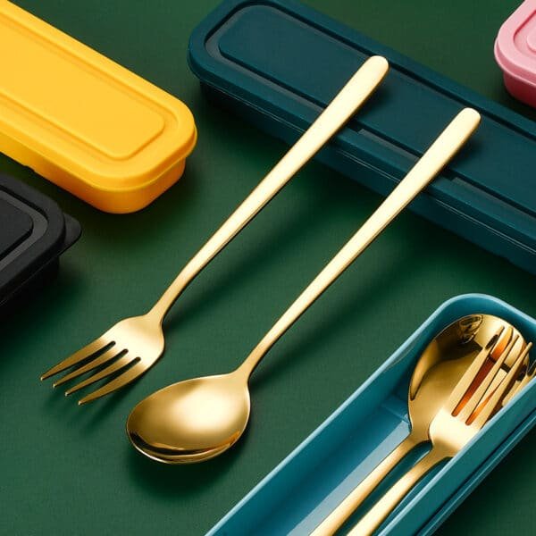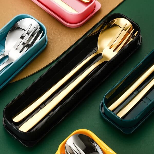 Each travel flatware set includes 1 spoon and 1 fork. The travel silverware set with box is made of high quality food grade stainless steel, sturdy and durable. Fork is easy to penetrate food, not easy to deform and bend. The table spoon has smooth edges and is of moderate size. This travel cutlery set with box has a simple appearance, moderate thickness and weight, comfortable to hold. It fits any style of kitchen cutlery and provides you with a sophisticated dining experience.