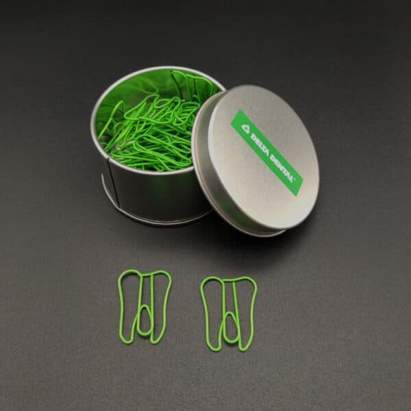 The lovely design and shiny appearance of the great paperclips will add extra color and more fun to your life, will bring you good mood. These paper clips are exquisite and durable. Made of premium stainless-steel materials, so they are not easy to rust and fracture, and can be used for a long time. These paper clips are very useful for documents, notebooks, scrapbooks and other office paper. Not easy to fade, simple design, but very cute, strong enough to clip paper well. Bring you fun and convenience during work in office, learning in school, daily use, etc. Add your own logo on the can and make it a great gift for your business. More information, please send your detailed request for quotation. Made from metal material, measuring 1.37*1.18 inches, this custom tooth shaped metal paperclips in a can. Usage Scenarios: Office supplies, school stationery, corporate promotions, trade show giveaways. We offer logo printing and full packaging customization. Product Highlights: Writable surface, lightweight, recyclable paper.