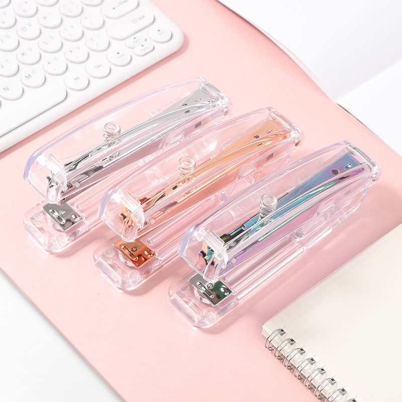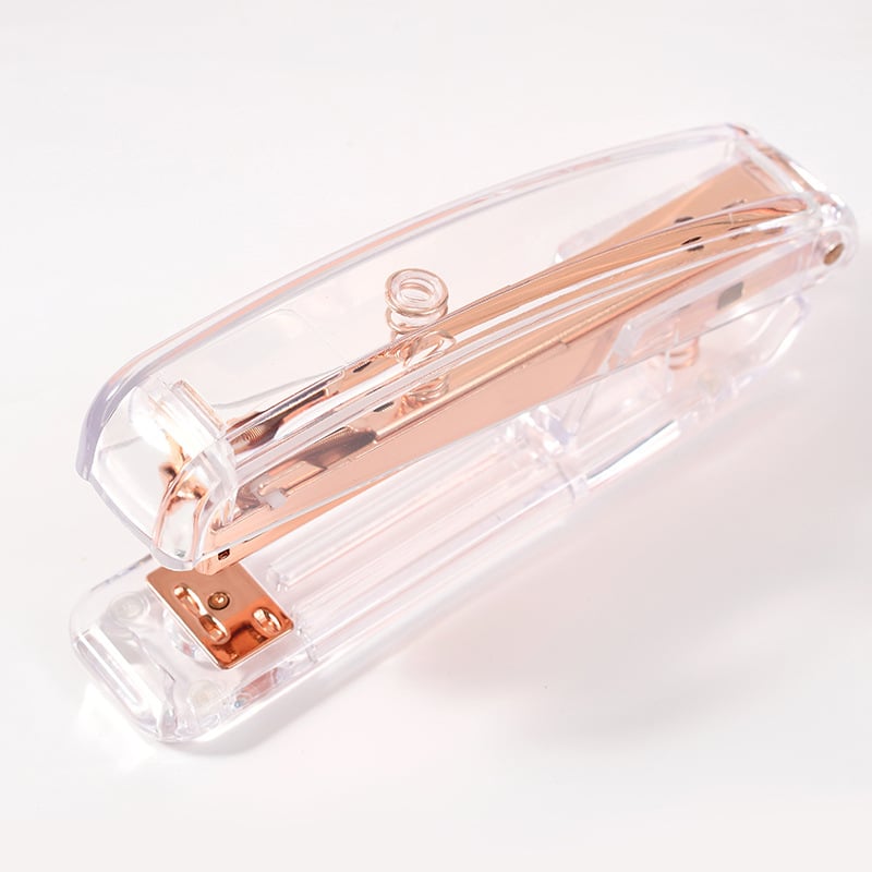 Introducing our Transparent Shell Minimalist Stapler, a stylish and functional addition to any workspace. This stapler features a clear outer casing that showcases its sleek design, available in four elegant colors: rose gold, rainbow, silver, and gold. Its modern aesthetic makes it a perfect accessory for any office or home desk. Key features include the ability to staple up to 20 sheets of paper at once, providing reliable performance for everyday tasks. The transparent shell adds a touch of sophistication while allowing you to see the inner workings of the stapler. Choose from four stunning color options to match your personal style, and enjoy the blend of functionality and elegance in this minimalist stapler. Made from ps material, measuring 6.30*1.38*2.36 inches, this custom transparent shell minimalist stapler. Usage Scenarios: Office supplies, school stationery, corporate promotions, trade show giveaways. We offer logo printing and full packaging customization. Product Highlights: Portable, durable, practical for daily use.