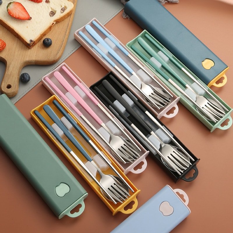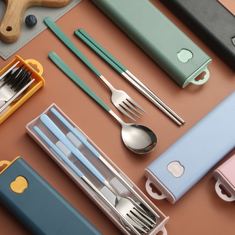 The cutlery is made of stainless steel. It is a healthy, environmentally friendly, lightweight, smooth texture, and soft color. Each set of cutlery includes a fork, a spoon, and a pair of chopsticks. Beautifully designed, stylish, compact, and portable, suitable for school lunch boxes, camping, and traveling, meet your life needs. Can be used for daily meals, work lunches or to take out with your bag when traveling or camping. A healthy life starts with a healthy cutlery set. A perfect gift for your family or friends. Measuring 8.46*1.96 inches, this custom travel portable gift tableware set. Usage Scenarios: Office supplies, school stationery, corporate promotions, trade show giveaways. Customization available: Print your logo or customize packaging and color schemes. Product Highlights: Portable, durable, practical for daily use.