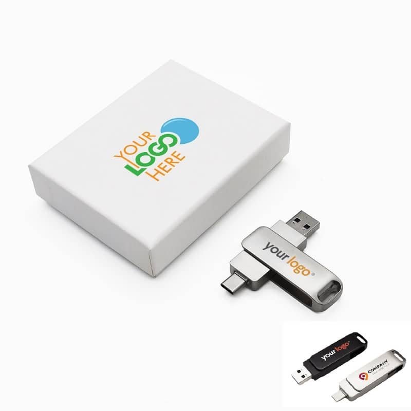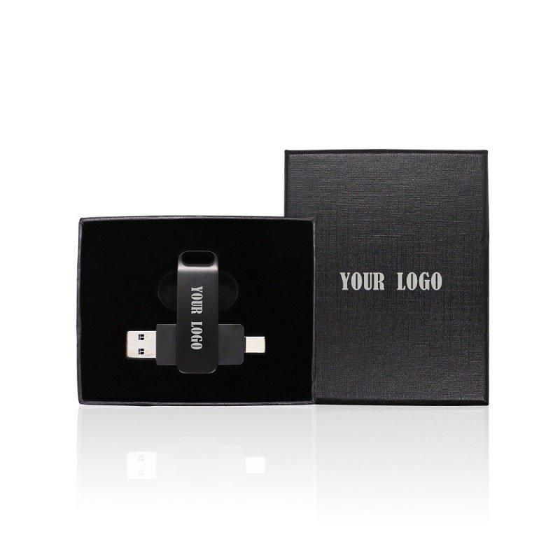 This Type-C USB drive features a reversible Type-C connector along with a standard USB 2.0 connector, offering compatibility with a wide range of devices, including the latest smartphones, tablets, and computers. Engineered for high-speed data transfer, it allows for quick and efficient file transfers, enhancing productivity and saving time. The compact design ensures that it is easy to carry, while the robust build guarantees durability and reliability. Each USB drive comes in an elegant gift box, making it ready for gifting or perfect for storage when not in use. Made from metal material, measuring 8GB, this custom type c flash drive-2 in 1. Usage Scenarios: Office supplies, school stationery, corporate promotions, trade show giveaways. Customization available: Print your logo or customize packaging and color schemes. Product Highlights: Portable, durable, practical for daily use.