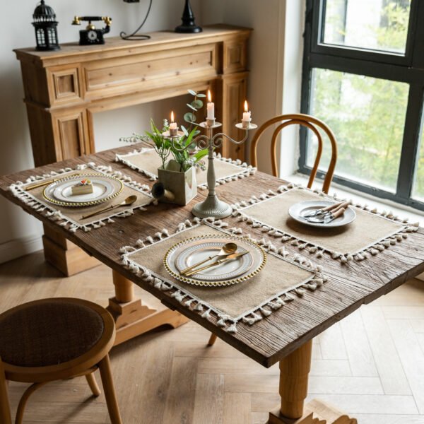 Made of high-hemp material which is durable. Heat insulation, non-slip,wear-resistant. Use these table mats to protect your tabletop from heat, scratches, scuffs, stains and spills. Great for everyday use indoor or outdoor. Your logos are welcome. Other colors and sizes can be customized according to requirements. Measuring 17.71*11.81 inches, this custom vintage jute tassel insulated placemat. Usage Scenarios: Office supplies, school stationery, corporate promotions, trade show giveaways. Tailored branding: Supports logo imprint and design personalization. Product Highlights: Portable, durable, practical for daily use.