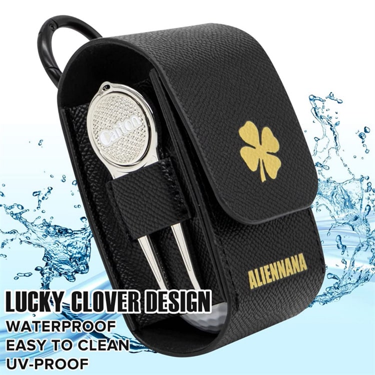 Our golf pouch is made of high quality PU leather. Valuables pouch has fine workmanship, which is delicate and solid stitching, and it is not easy to deform. It is very practical and useful for golf lovers to take with while they are go out for training. High quality leather golf pouch is convenient to use, and easy to clean. The golf waist pouch is attached with strong swivel snap buckle so that can be hanged to your waist belt or golf club bag. when playing golf, You can take it with you anywhere for taking out golf balls to use easily. Lucky clover designed golf valuables pouch will bring good luck to your golf practice, making you more interested in golf activities. Golf balls and golf tees not included. Custom logo is welcomed!