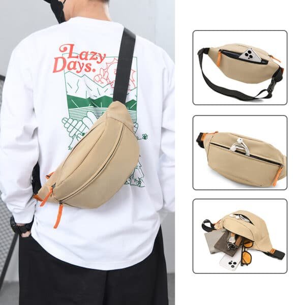 Basic color matching, suitable for matching with all kinds of styling, most suitable for daily casual use. Adopting high quality soft fabric, clear and natural texture, comfortable and delicate feel. Selection of special alloy zipper head, wear-resistant and anti-scratch, easy to cope with a variety of environments in the process of use, accompany you through the long years. Large-capacity fanny pack, can accommodate daily needs, usually go out with this bag is enough. The shoulder strap is equipped with a shrink buckle to adjust the length of the shoulder strap. Made from oxford fabric material, measuring 12.9*5.1*3.1 inches, this custom waterproof casual sports fanny pack. Usage Scenarios: Office supplies, school stationery, corporate promotions, trade show giveaways. Customization: Logo printing available with multiple packaging and color options. Product Highlights: Portable, durable, practical for daily use.