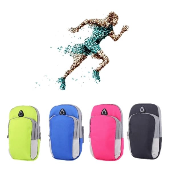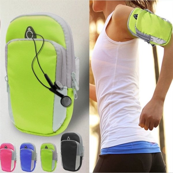 The portable arm bags is made of Polyester. It is shock absorbent, damp proof. Man and woman both can use it . You can put your personal belongings when you go out camping or running or other ways. This Mobile Pouch arm bag is made of high quality durable and practical polyester. It features double pockets and can easily hold mobile phone, MP3/MP4, keys, money and other small portable items. Good assistant when you are in gym, sporting, bicycling, running or climbing.