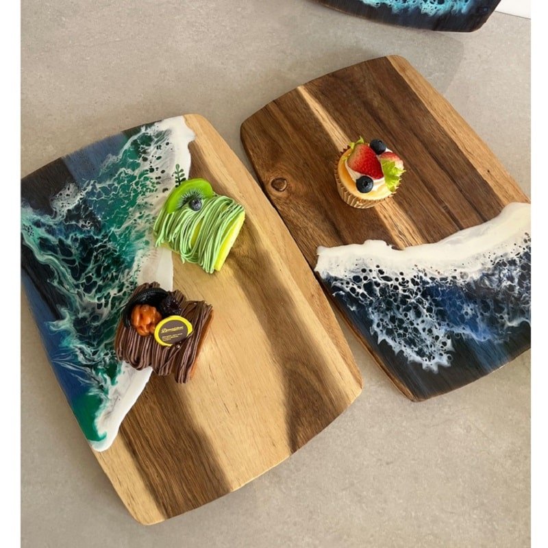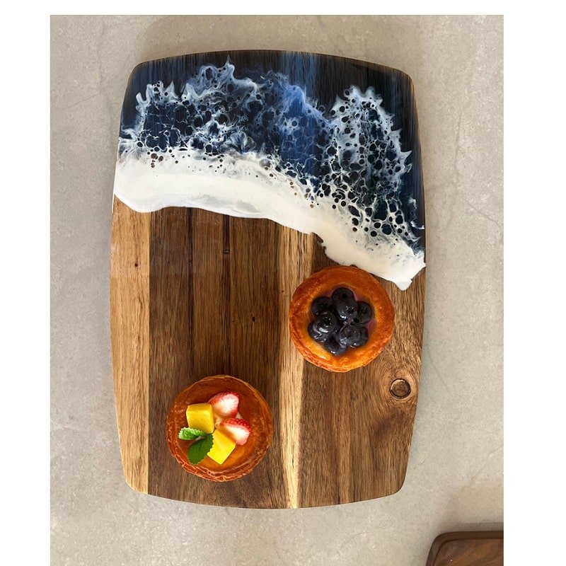 Introducing our exquisite Natural Splicing Cutting Board, where simplicity meets style for an enhanced culinary experience.Crafted with a blend of natural materials, our cutting board embodies the essence of simplicity and elegance, adding a touch of sophistication to your kitchen decor. Its unique splicing design combines the beauty of acacia wood with the durability of resin, creating a stunning piece that elevates your cooking space. Measuring 18.8*7.5*0.7 inches, this custom wave resin cutting board 18.8*7.5*0.7 inches. Usage Scenarios: Office supplies, school stationery, corporate promotions, trade show giveaways. Tailored branding: Supports logo imprint and design personalization. Product Highlights: Portable, durable, practical for daily use.