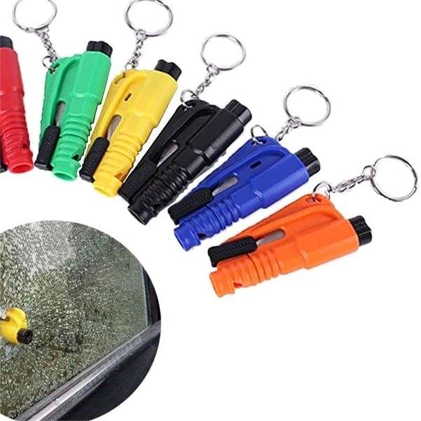 Window breaker keychain is made high quality ABS,it is 1 3/16 * 2 15/16inch.In case of emergency,you can use your car kit to break the window,remove the cap,press the escape device to the end,heard a bang,broken glass,emergency escape.(When testing the broken window function,please use it on glass or wood. Please do not use the broken window function on a soft plane.)