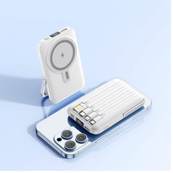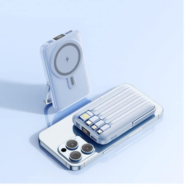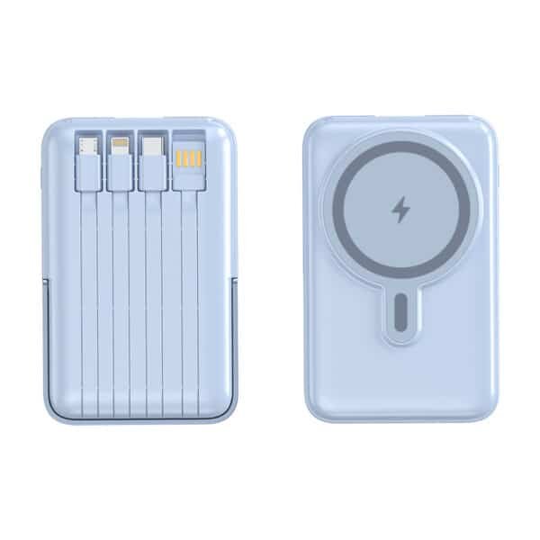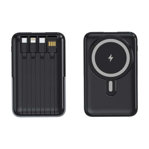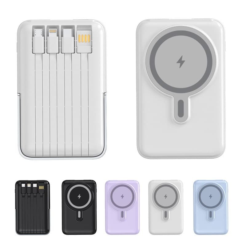 The charger wirelessly charges your phone while the practical foldable stand props up your phone for easy viewing. Get a safe and secure wireless charge with the perfectly aligned strong magnets that snap onto your phone or compatible case for a constant charge.Comes with four data cables, can charge 6 cell phones at the same time, strong adsorption, even with a phone case can be charged, wired and wireless can enjoy the charging function, Type-C interface, Micro interface, Apple interface, USB interface, can be adapted to different mobile devices fast charging! Made from plastic material, measuring 4.41*2.8*0.9 inches, this custom wireless power bank 10000mah portable charger. Usage Scenarios: Office supplies, school stationery, corporate promotions, trade show giveaways. Customization available: Print your logo or customize packaging and color schemes. Product Highlights: Compact size, lightweight, easy to carry.